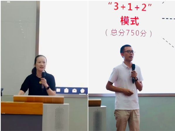 吕清松介绍新高考改革方案及学校招生录取政策,宋丹介绍学校2025年招生亮点、宣传策略,重点围绕学校招生宣传工作要点及变化进行说明,并传达学校《招生宣传工作提示清单》和《招生宣传快问快答》内容要求。各参会老师结合具体问题,积极交流讨论。
