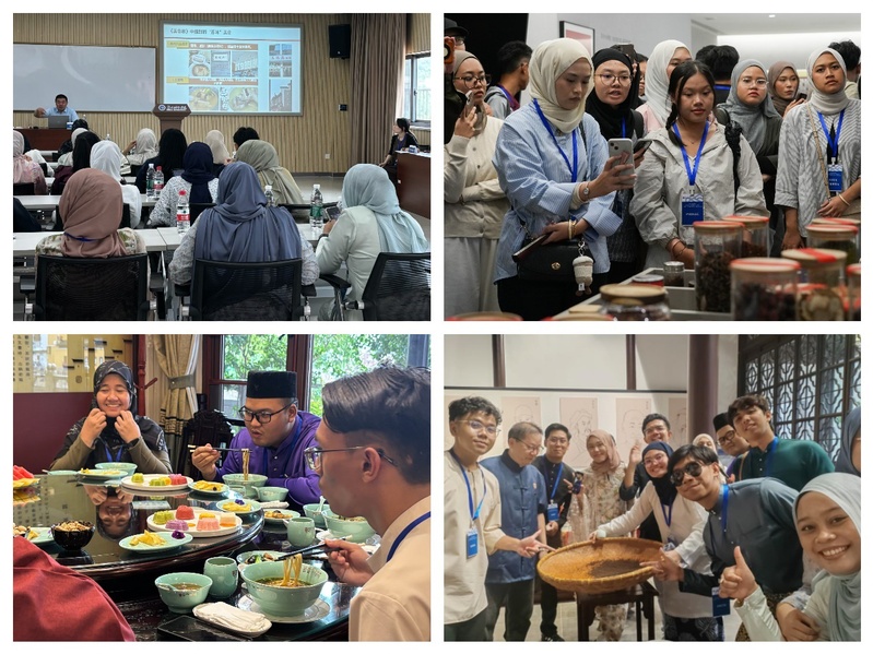6月19日及20日下午,马来西亚师生先后来到新梅华饮食文化博物馆、裕面堂苏式面馆和曹沧洲祠雷允上药业,实地感受苏味苏作与非遗传承。在新梅华饮食文化博物馆,师生们直观了解了苏州饮食文化从食材源头到烹饪呈现的全过程,深刻体验了“从农田到餐桌”的大食物观以及现代餐饮企业对非遗技艺的活态传承与创新展示。在古色古香的裕面堂苏式面馆,师生们品尝了独具风味的苏式素面与素点,不仅是口感上的新奇体验,更是对苏州人饮食智慧的直观感受。在曹沧州祠雷允上药业,师生们迎来了“药食同源”文化体验,不仅亲眼见证了传统中医药与现代饮品的结合创新,更在非遗传承人的指导下,亲自动手体验了传统药丸的制作技艺,对苏州饮食的健康价值有了更深层次的理解。