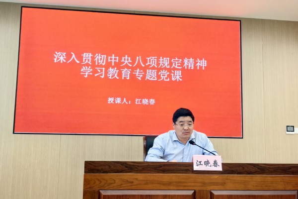 在专题党课环节,江晓春围绕党的作风建设,为全体党员授课。他深入解读党的理论与方针政策,引导党员们坚守初心使命,以党建为引领,强调内正风气、外塑形象,为城市治理贡献力量。