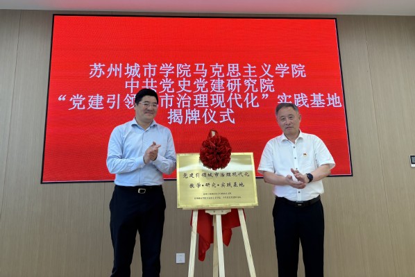 江晓春与田芝健共同为苏州工业园区综合行政执法支队与苏州城市学院马克思主义学院、中共党史党建研究院共同打造的党建引领城市治理现代化教学·研究·实践基地揭牌。该基地作为双方合作的桥梁,将整合资源,助力城市治理和综合执法课题研究,为园区城市治理高质量发展注入新动力。