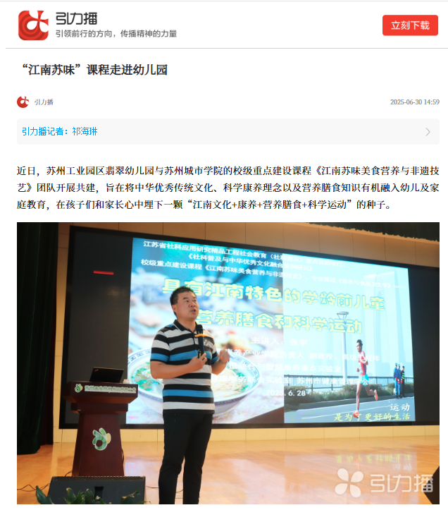 张宇表示,此次与苏州市工业园区翡翠幼儿园的创新合作,标志着苏州城市学院在推动优秀传统文化普及、康养理念传播和健康膳食研究方面,进一步拓展了受众群体,将教育的触角延伸至幼儿教育端口。未来,苏州城市学院将继续深化此类跨界合作,将高校的智力资源转化为社会发展的内生动力。