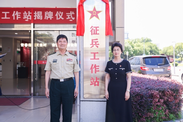 征兵工作站揭牌仪式由党委学生工作部(学生工作处、人民武装部)副部(处)长祁素萍主持。刘来贵司令员与周玉玲书记共同为“苏州城市学院征兵工作站”揭牌。