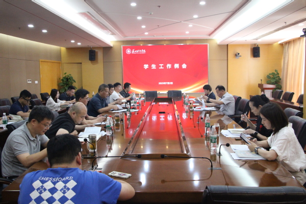 7月2日上午,我校在综合楼三楼大会议室召开学生工作例会。校党委常委、副校长吴昌政,团委(美育中心)、招生就业处、党委学生工作部(学生工作处)等职能部门负责人,各二级学院党委书记、分管学生工作副书记、青年干事、团学办主任以及党委学生工作部(学生工作处)相关老师参加会议。会议由吴昌政主持。