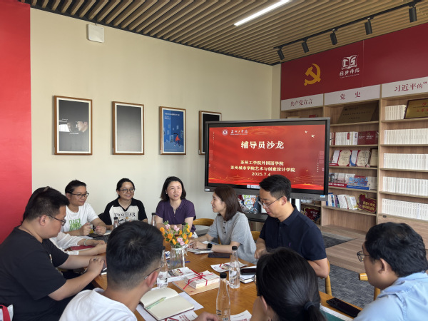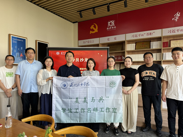 为深化高校学生工作创新实践,推动美育与思政教育融合发展,7月4日,苏州城市学院“美美与共”学生工作名师工作室一行赴苏州工学院,就学生工作名师工作室建设开展专题学习交流。苏州工学院外国语学院党委副书记、副院长郭银亚,苏州城市学院团委副书记崔苏妍、苏州城市学院艺术与创意设计学院党委副书记丁良超及双方工作室成员代表参与活动,双方围绕“三点伴”辅导员工作室与“经典译站”工作室的建设经验展开深入研讨。