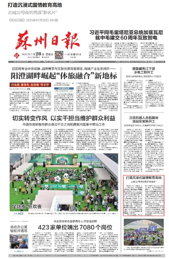 近日,江苏省高等教育学会外国留学生教育管理研究委员会公布了2025年江苏高校来华留学生中国国情教育社会实践活动基地名单。其中,由苏州城市学院与姑苏区沧浪街道联合申报的“苏州城市学院—苏州古城32号街坊来华留学生中国国情教育基地”成功入选。这既是落实教育强国战略的一次具体实践,更是政校深度协同、汇聚社会力量,为海内外青年学子打造沉浸式、体验式中国国情教育新高地的典型案例。