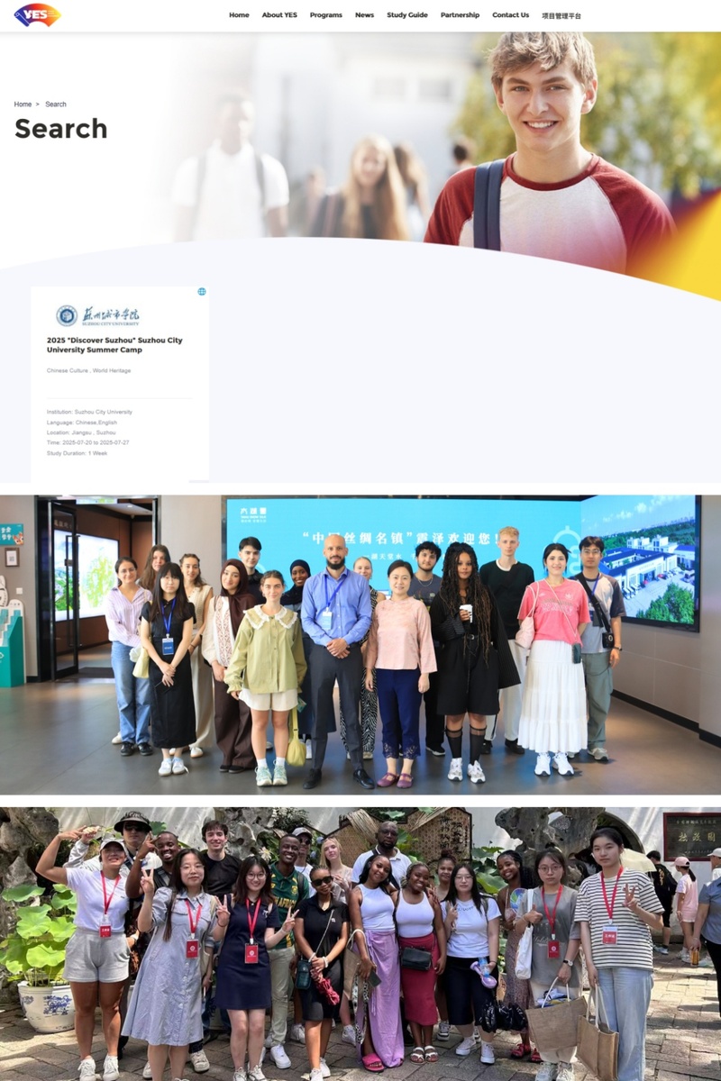 我校举办的2024海外华裔青少年“侨见苏州”夏令营成功获批教育部“青年使者交流学习计划”(YES项目),并入选中国高等教育学会外国留学生教育管理分会评选的2025年“学在中国”来华留学教育管理案例。2025“留学苏城·遇见苏州”夏令营项目成功获批YES项目官网推介项目。7月6日至8日,举办教育部中外语言交流合作中心“汉语桥”南非大学生访华团活动,首次面向非洲国家开展合作探索,推动教育领域“南南合作”。7月20日至27日,进一步贯彻落实“3年1万、欧洲翻番”重大倡议精神,举办“锦绣江苏”国际暑期学校——苏州城市学院“品苏味非遗·识吴村发展”项目,招收来自法国、比利时、西班牙、意大利和罗马尼亚的13名师生参加。