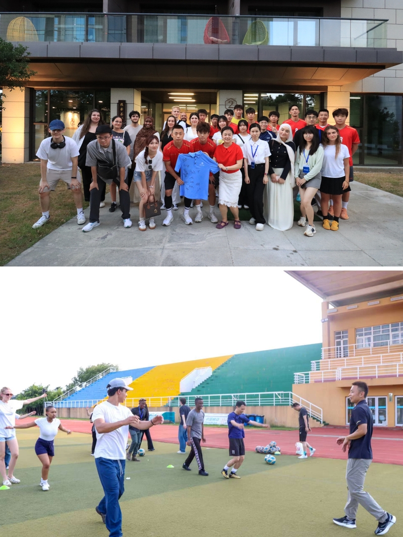 我校借助“苏超联赛”开展势头与宣传热度,将足球运动作为中外学生交流的重要载体,依托苏州深厚的足球文化底蕴与先进训练设施,积极推动体育国际交流。7月6日,邀请“苏超联赛”苏州队队长、我校基础教学部体育系陈伟老师为南非留学生开展足球专业讲座与训练,中外师生通过切磋球技增进友谊。7月24日,组织欧洲留学生参访太湖足球训练基地,观摩苏州队职业选手训练,零距离感受“苏超”激情与苏州体育产业的蓬勃发展。一系列体育交流不仅丰富了留学生的校园生活,更以“足球+国际”模式拓展了苏州城市形象的国际传播路径,助力苏州运动品牌走向世界。