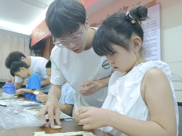 孩子们眼中闪烁的求知光芒以及成功后雀跃的神情,展现出活动的价值。本次活动中,大学生依托学院的专业特色优势,积极响应国家“加强科普能力建设,营造热爱科学、崇尚科学的社会氛围”,融合严谨的科学性与生动的趣味性,为暑托班孩子带来不一样的暑期体验。
