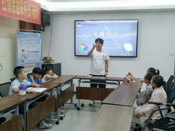 党的十八大以来,习近平总书记多次对科普工作作出重要指示批示。近年来,各地高校纷纷响应号召开展科普活动。2025年7月7日上午,苏州市姑苏区彩香二村北社区党群服务中心,苏州城市学院光学与电子信息学院的“百人百讲”志愿科普服务队,以“有趣的光”为主题,为暑托班的孩子们带来了一场光学科普活动。