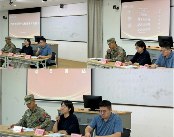党委学生工作部副部(处)长祁素萍作动员讲话。她指出,学生军训是落实立德树人根本任务的重要途径,学生教官既是受训者,更是未来的组训者,肩负传递军人精神、引领新生成长的光荣使命。她希望全体学生教官提高思想认识、刻苦投入训练、严守组织纪律,努力成长为“政治思想强、军事技术精、作风纪律严、组训能力强”的合格教官,为2025级新生军训工作奠定坚实基础。