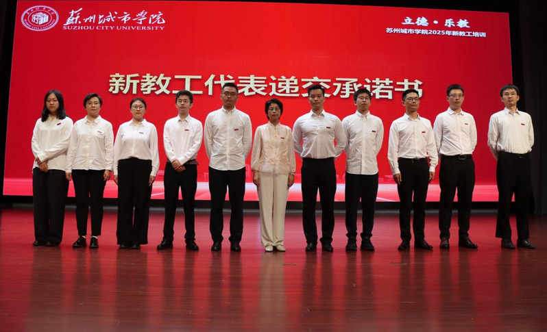 赵志宏代表校党委、行政对新教工加盟苏州城市学院表示热烈欢迎。他简要介绍我校的历史发展与现状,并提出三点期望与要求。一是找准时代定位,践行育人使命。要顺应时代大势,积极担负起“为党育人、为国育才”的伟大使命;要主动融入苏州发展大局,服务地方新质生产力培育与中国式现代化苏州实践。二是筑牢师德根基,厚植育人情怀。要以“身正为师,学高为范”自勉,成为学生为学、为事、为人的“大先生”;要倍加珍惜教师身份,展现教书育人新风貌、新担当、新作为。三是提升专业素养,锤炼育人本领。要坚持守正创新,积极探索教学新模式,努力构建“生-机-师”三元共生的教学生态;要开展有组织的科研与社会服务,推动科技成果与政策建议转化应用,提升学校服务地方社会发展效能。