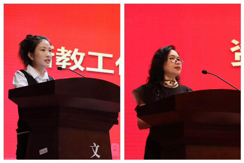 艺术与创意设计学院副院长刘咏清教授作为资深教师代表发言。她从学高为师,当以“终身学习”筑牢立业之基;身正为范,当以“端正言行”恪守从教之本;和而不同,争当文明互鉴的“摆渡人”;肩负三大任务,当以“努力奋斗”成就事业之实等四个方面,分享自己从教27年的心得。她勉励新教工们要以敢为人先的锐气,上下求索的志气,厚积薄发的底气,将个人奋斗融入学校发展洪流,共同书写属于苏州城市学院的崭新篇章。