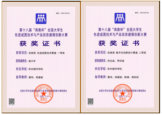 近日,第十八届“高教杯”全国大学生先进成图技术与产品信息建模创新大赛全国总决赛在太原理工大学举行。本届大赛吸引了东南大学、上海交通大学、同济大学等全国1000余所高校积极参与。在学校教务处及其它部门的重视关心下,智能制造与智慧交通学院选拔优秀教师参与指导培训,苏城学子凭借扎实的专业功底、出色的创新能力与默契的团队协作,最终斩获国家级一等奖1项、国家级二等奖1项、省级团体赛三等奖1项,取得学校该项赛事历史性最好成绩。