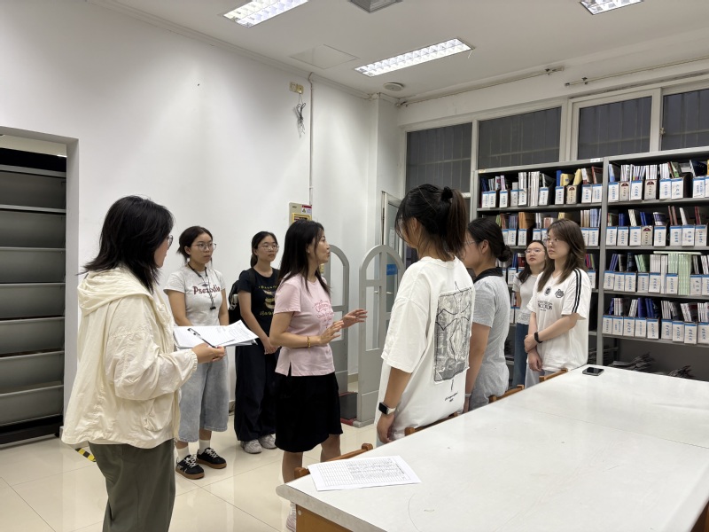 在业务培训环节,各岗位教师分别开展专项指导。侯老师系统讲解了图书检索、借还书操作、存包管理及读者咨询等服务内容,并组织学生进行实操演练。曹老师与黄老师带领同学们熟悉书库日常管理流程,现场演示图书分类、整架及倒架等标准操作。郭老师针对报刊收发、下架整理、编目加工及阅览室维护等工作进行了系统培训。蒋老师则对档案整理、数字化扫描、装订和上架等流程进行了实地带教与专业指导。
