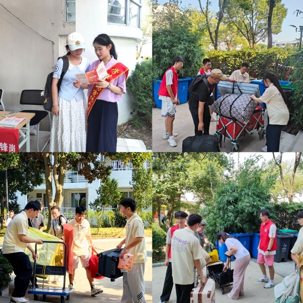 学院在第一社区宿舍楼设立党员先锋岗,让党旗在迎新一线飘扬。党员志愿者们早早到位,身着统一标识服装,主动上前接过新生手中的行李箱、包裹等。搬运间隙,志愿者们还化身“校园向导”,针对新生提出的宿舍设施使用、周边生活配套、报到后续流程等疑问,逐一细致解答。一个个忙碌的身影,让新生在踏入校园的第一时间便感受到实实在在的温暖,也让党组织的关怀与温情在迎新现场悄然传递。