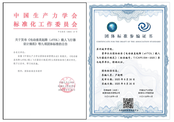 卢晓晖现为艺术与创意设计学院产品设计系主任助理、苏州市航空文化与航空模型科普馆负责人。在历经10个月的编制过程中,他结合自身的理论研究与实验数据,重点围绕eVTOL飞行器的构型创新设计、空气动力学设计、系统组成、可靠性要求、安全性要求、人机交互要求、材料结构要求等核心议题,多项建议被最终写入标准定稿。