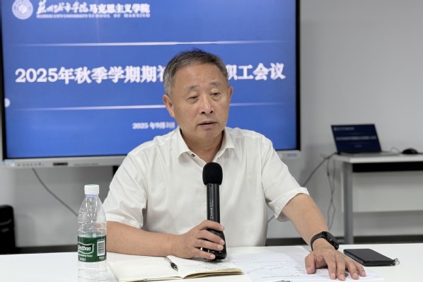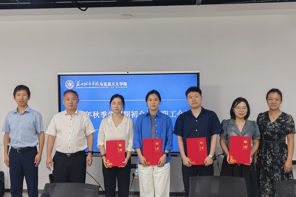 学院副院长李宏刚带领学习《苏州城市学院教师教学工作管理规定》等教学制度文件,对新学期的教学安排、课程建设及评估相关教学任务作出具体部署。他强调,思政课教学要坚持“保底赋能”,严守教学基本规范,持续提升课堂效能和育人质量。