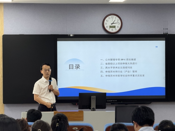 9月11日,城市治理与公共事务学院在3-211召开新学期全院教职工会议,全面回顾暑期重点工作,系统部署新学期核心任务,将本科教学工作合格评估作为本学期贯穿始终的核心主线,号召全院师生以高度责任感笃定实干开启新学期新征程。