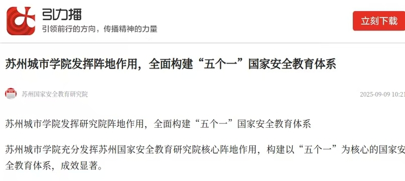 苏州城市学院充分发挥苏州国家安全教育研究院核心阵地作用,构建以“五个一”为核心的国家安全教育体系,成效显著。