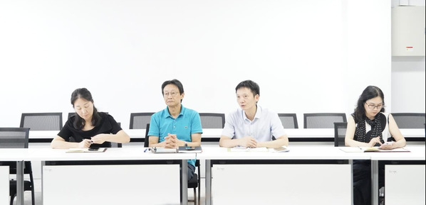 产品设计系的缪炜讲述了自己从苏州工学院产品设计系来到学院后的工作情况,介绍了目前在学校科研处跟岗锻炼的安排。环境设计系的胡东楠表达了对学院重点课程建设计划覆盖青年教师的感谢,分享了作为“双翼赋能计划”第一批培养对象的收获。新入职教职工介绍自己工作规划的同时,也提出了工作中遇到的一些困惑和问题,如实验室条件、教学材料采购流程、班主任工作安排、学生学科竞赛组织等,希望学院能提供更多机会和锻炼平台。针对老师们提出的问题,与会班子成员分别记录,并进行了解答和回应。