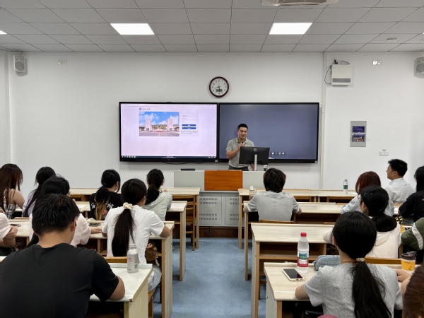 讲座在热烈的氛围中拉开帷幕。孙伟帏首先以“什么是会展盲盒?”这一生动问题引发在场同学的浓厚兴趣,他巧妙地将会展行业比喻为一个充满惊喜和未知的“盲盒”,每一份探索都可能开启职业发展的全新可能。
