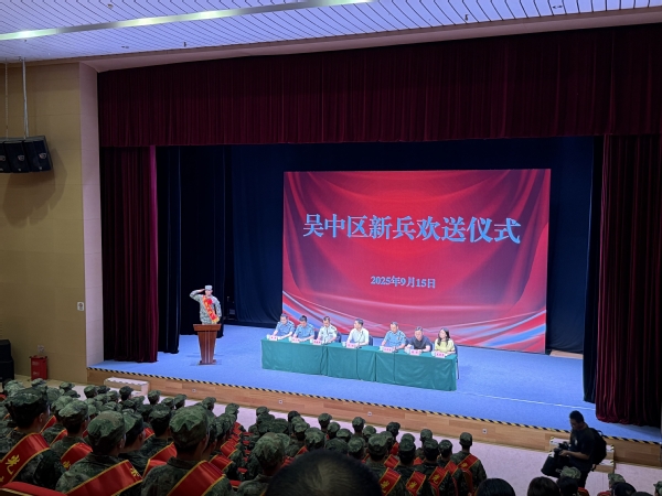 9月15日下午,吴中区2025年下半年新兵入伍欢送大会在苏州保利大剧院庄严举行。我校党委学生工作部(学生工作处、人民武装部)副(部)处长祁素萍代表学校前往参加欢送仪式,为入伍学子送上殷切期望与美好祝福。