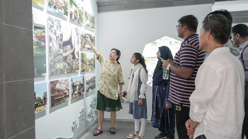 太湖书院作为苏州文化地标之一,融汇了江南园林的雅致与香山帮建筑的匠心独运。外籍教师们漫步于白墙黛瓦、曲径通幽的书院中,在讲解员的引导下,细致观察了建筑的木构榫卯、砖雕纹饰、叠山理水等细节,亲身感受香山帮“虽由人作,宛自天开”的建筑理念。匠师们对自然材料的巧妙运用、对空间意境的营造,以及追求和谐与精益求精的工匠精神,引发了外籍教师的浓厚兴趣与连连赞叹。