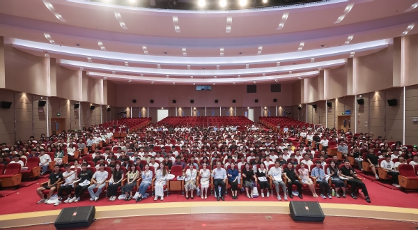 2023级新能源材料与器件专业学生许艺嘉作为老生代表发言。她结合自身学习经历,向新生提出三点建议:一是找准方向,主动探索学院提供的各类平台;二是平衡学业与实践,全面提升综合素养;三是保持韧性,勇于面对学习和生活中的挑战,书写属于自己的大学篇章。