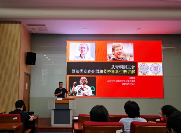 为加强学院学风建设,帮助2025级新生提前熟悉编程知识、了解算法竞赛,9月30日上午,计算科学与人工智能学院于3-101举办“科创新程•筑基启航”蓝桥杯软件赛竞赛指导讲座。讲座由学院团学办公室副主任施然主持,特邀苏州大学朱晓旭副教授担任主讲嘉宾。