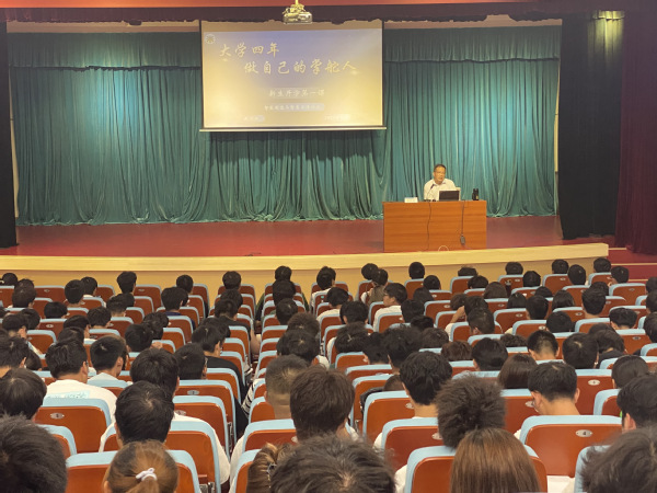 为助力新生快速融入大学生活,9月28日上午,智能制造与智慧交通学院党委副书记钱伟超在学术报告厅为2025级学生讲授“新生第一课”,团学办公室主任朱一丹、辅导员陆则奕以及全体新生出席。
