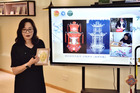 在《话灯节·苏州灯彩 赏苏灯·制作技艺》书籍分享环节中,汪丽秋老师通过现场演示和互动讲解,生动展现了苏州灯彩的历史渊源和制作工艺,更结合书中的文化脉络,将苏灯的艺术特色与苏州人文精神娓娓道来,不仅打破了同学们对传统非遗的遥远印象,更激发了大家对传统手工艺的探索兴趣。