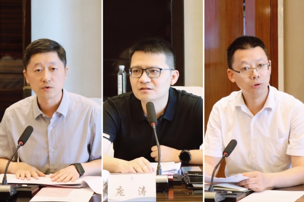 随后,与会人员围绕产学研深度合作、人才引育与就业联动等关键议题展开交流。庞涛结合张家港市“4+4+N”产业链布局,全面介绍了全市产学研合作支持政策及已落地校地合作项目的进展情况,重点聚焦校企技术对接、科研成果转化与关键技术联合攻关等领域,提出了下一步合作的具体方向。陶纪元聚焦人才工作,详细介绍了张家港市各级高质量创新创业人才培育与发展成果,并结合地方产业发展实际需求,明确提出了与我校在人才共引共育、创新平台共建共享等方面的合作意向与具体需求。张远勇介绍了当前张家港市企业毕业生招聘、实习岗位开发的推进情况及地方就业创业扶持政策,希望学校在人才联合培养与定向输送方面给予更多支持,助力地方产业高质量发展。