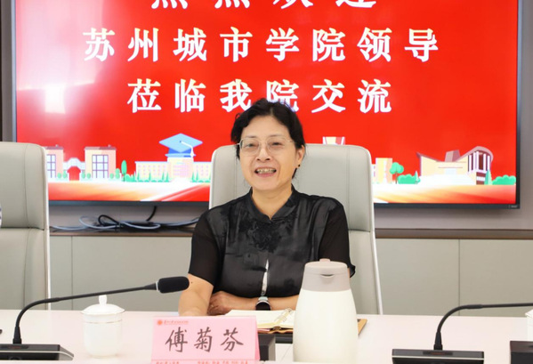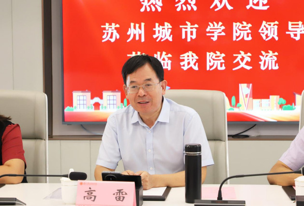 傅菊芬对高雷一行的到访表示热烈欢迎,介绍了苏州大学应用技术学院的整体情况,她指出,苏州城市学院与苏州大学应用技术学院作为长期以来的兄弟院校,始终秉持互学互鉴、协同共进的理念,在办学治校、教育教学等多领域保持着密切交流,形成了深厚的合作情谊与良好的互动传统。希望后续通过资源共享、经验互融与创新协同,提升双方的教育质量与治理效能,为跨区域、跨文化的可持续发展树立典范。