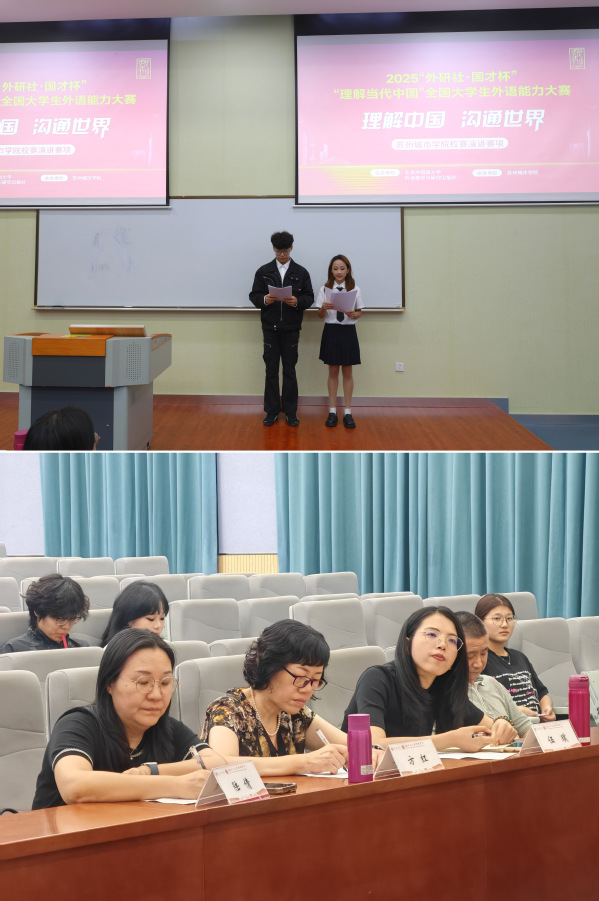 为选拔优秀选手、激发学子外语学习与演讲热情。10月10日晚,城市文化与传播学院于3-201教室顺利举办2025“外研社·国才杯”“理解当代中国”全国大学生外语能力大赛英语组演讲赛项校赛。本次比赛邀请城市文化与传播学院院长助理、英语专业建设负责人孙少华担任监审工作,苏州大学外国语学院英文系教师方红、陆倩,城市文化与传播学院教师伍璞担任评委嘉宾。
