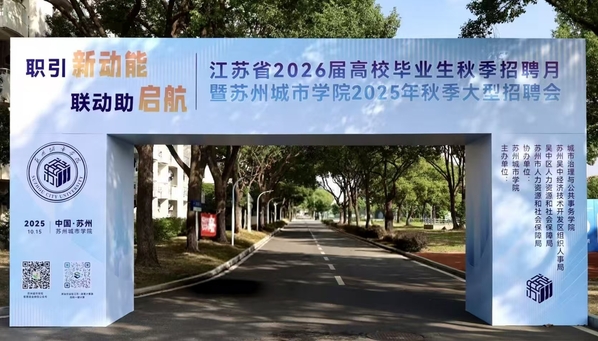 为积极响应江苏省“2026届高校毕业生秋季招聘月”专项活动部署,着力构建“省级统筹、校地联动”的精准就业服务格局,我校于10月15日在校田径场举办“职引新功能,联动助启航”——苏州城市学院2025年秋季大型招聘会。本次招聘会由苏州市人力资源和社会保障局、吴中区人力资源和社会保障局、苏州吴中经济技术开发区组织人事局、城市治理与公共事务学院共同协办。
