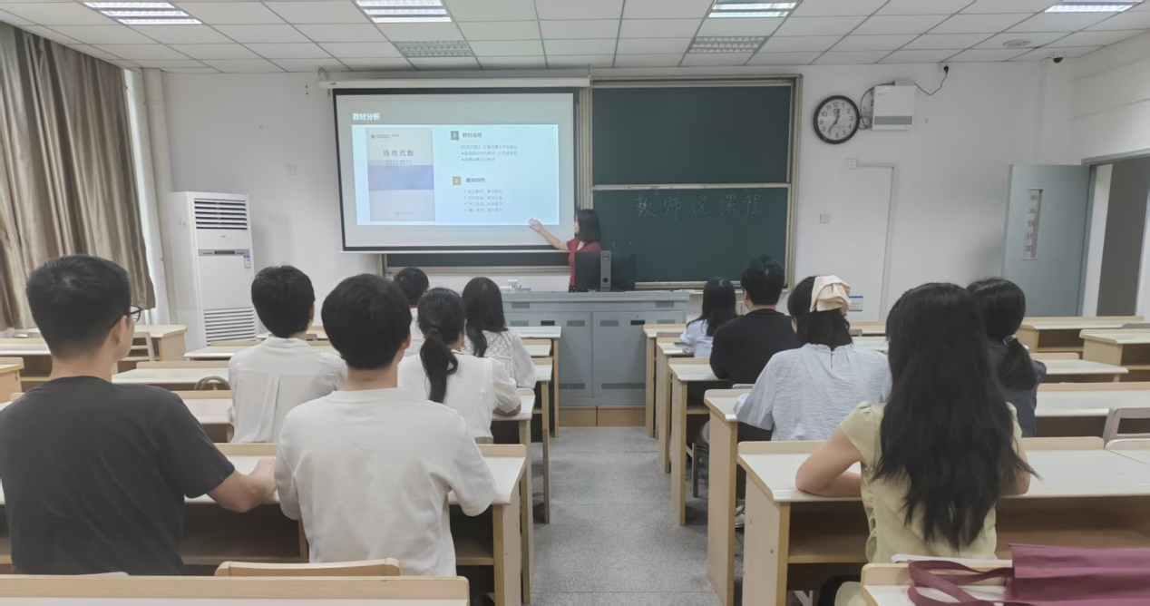 为迎接本科教学工作合格评估,夯实教学基础,10月20日中午,基础教学部数学系在5-110教室成功举办“教师说课程”活动。蒋清扬和史莹两位老师分别就《高等数学(一)上》与《线性代数》课程进行了系统说课,数学系全体教师参与交流。