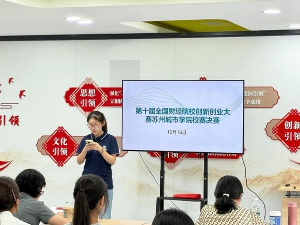为激发学生创新创业热情,培养我校学子的创新精神与创业能力,10月16日下午,第十届全国财经院校创新创业大赛苏州城市学院校赛决赛于后勤大楼二楼会议室举办。本次比赛紧扣“创新引领未来,财经成就梦想”的主题,特邀多位专家老师担任评委,大赛指导老师张中英现场观赛指导。