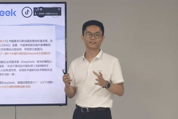 岗前试讲环节中,新进教师张杰以“历史是最好的教科书”为题进行教学展示。他运用九三阅兵、南京照相馆等视频素材,将AI技术、学习通平台、时政案例、课堂讨论有机融合,围绕“为何学习这门课”“这门课学什么”以及“如何学好这门课”三大核心问题,系统阐述了学习中国近现代史纲要课程的重要意义与方法路径。其授课内容充实,形式新颖,展现了良好的教学能力。