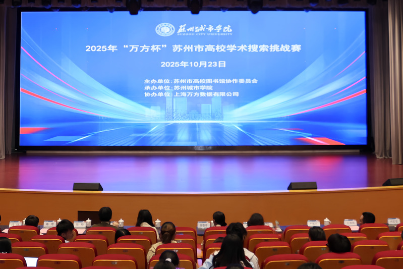 10月23日下午,由苏州市高校图书馆协作委员会主办、苏州城市学院图书馆(档案馆)承办、上海万方数据有限公司协办的2025年“万方杯”苏州市高校学术搜索挑战赛决赛在我校成功举办。