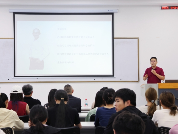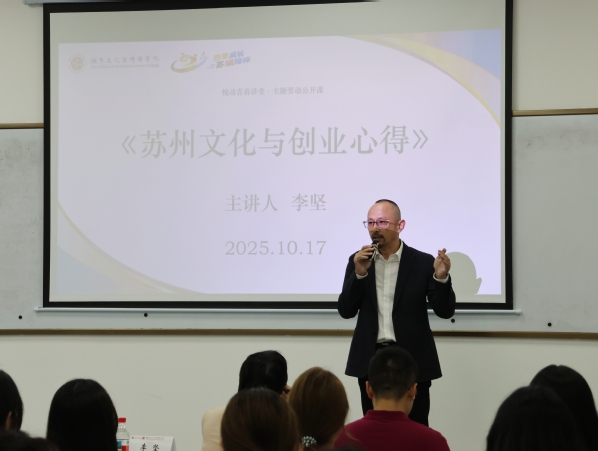 为更好地开展关心下一代,进一步深化社区学生对苏州地域文化以及对未来职业发展的认知与规划,10月17日下午,“一站式”学生社区知行社区(第二社区)联合城市文化与传播学院关工委于国际交流学院106举办悦动青春讲堂暨劳动公开课,本次活动邀请本地龙头企业——新鸿基精密部品有限公司创办人兼总经理李坚开展《苏州文化与创业心得》专题讲座。本次讲座由副社区长沈耀主持。苏州大学外国语学院教授施晖、苏州城市学院城市文化与传播学院院长助理孙少华、日语系主任张乔松、10号楼楼长邱缙、14号楼楼长徐晶晶以及社区2025级日语、播音主持专业学生共同参与。
