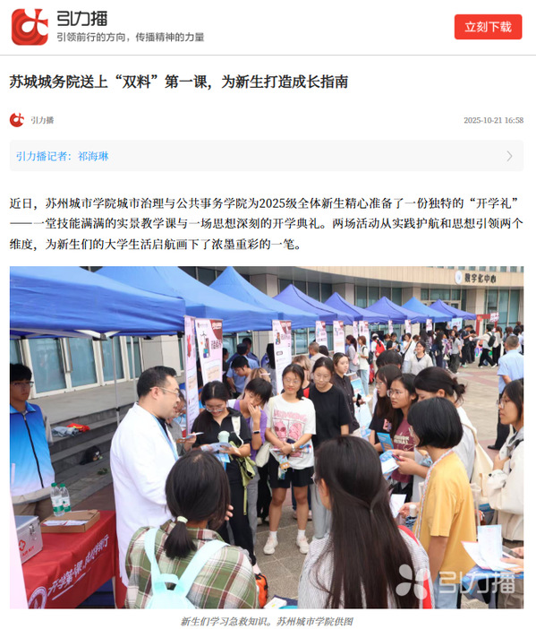 近日,苏州城市学院城市治理与公共事务学院为2025级全体新生精心准备了一份独特的“开学礼”——一堂技能满满的实景教学课与一场思想深刻的开学典礼。两场活动从实践护航和思想引领两个维度,为新生们的大学生活启航画下了浓墨重彩的一笔。
