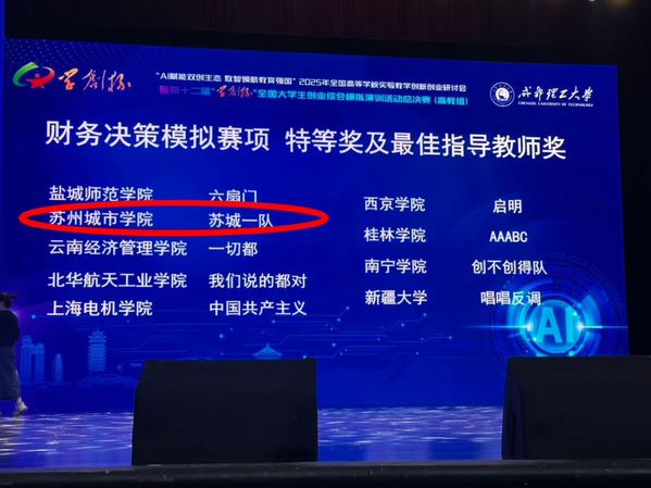 我院“苏城一队”赵孙雯、朱冬雪、李周苏扬三位同学在赛场沉着冷静、逻辑严密,团队成员分工明确,在虚拟企业运营的四个季度中精准制定财务战略、科学配置各类资源、巧妙平衡风险收益,展现了扎实的财务管理功底与优秀的数智决策能力。最终,团队凭借优异的综合表现斩获全国特等奖,充分彰显了我学在创新创业教育和数字化人才培养方面的实力与水平。