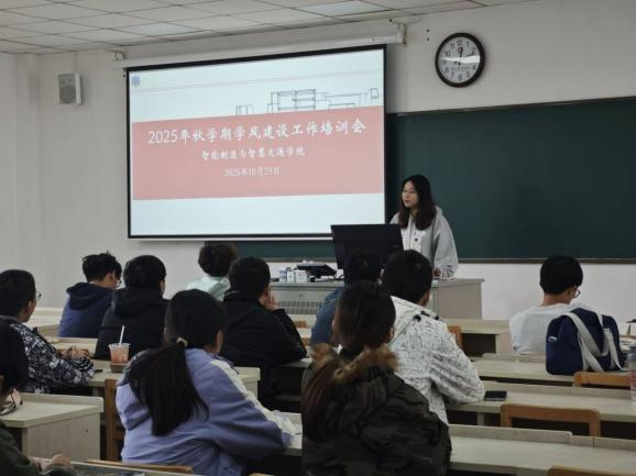 为充分发挥学生干部在学风建设中的先锋模范作用,强化学院学风建设,营造优良的育人氛围,智能制造与智慧交通学院于10月23日在4-301召开学风建设工作培训会,全体学风建设工作人员参加,会议由辅导员李禛芸主持。