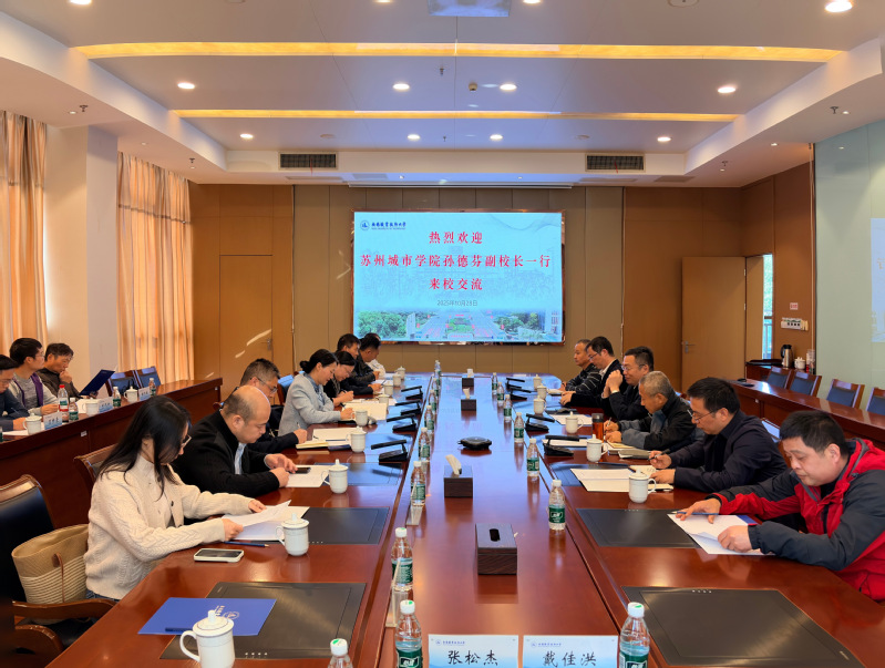 储开峰对孙德芬一行的到访表示热烈欢迎,介绍了无锡职业技术大学的整体情况,并就校园安全、实验室安全运行及共享情况、仪器设备采购与招投标情况等进行了简要介绍。他指出,苏州城市学院与无锡职业技术大学作为本科高校,在发展阶段及校园基础设施建设等方面有诸多相似之处,希望双方互学互鉴、共建共享,在校园安全、实验室安全、采购招投标等领域保持紧密对接,共同提升教育质量水平与校园安全水平。