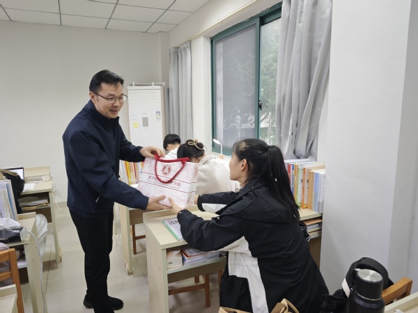 10月30日,学院领导亲临考研教室慰问备考学生,并向他们发放精心准备的“考研暖心礼包”,内含实用文具和寓意美好的励志礼品,为同学们送去温暖关怀。