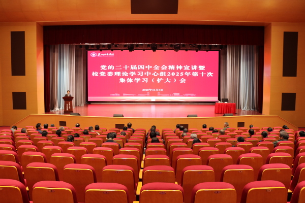 11月4日,学校举行党的二十届四中全会精神宣讲暨校党委理论学习中心组2025年第十次集体学习(扩大)会。周玉玲主持会议,马克思主义学院院长田芝健作题为《续写“两大奇迹”新篇章 奋力开创中国式现代化建设新局面》的宣讲报告。周玉玲就进一步抓好学习宣传贯彻,提出三点意见:在“学深悟透”上持续用力,确保入脑入心;在“宣传引导”上营造声势,凝聚发展共识;在“学以致用”上务求实效,推动高质量发展。她还结合学校当前“三大任务”,提出三点要求:一是关于省委巡视整改,要强化巡视整改的政治自觉、思想自觉和行动自觉;确保巡视整改见真章、动真格、有实效;通过巡视整改锻造作风、推动改革、促进发展。二是关于合格评估,要不断提升合格评估工作的战略站位;不断加强合格评估工作的执行力度;不断拓宽合格评估工作的视野格局。三是关于“十五五”规划,要进一步聚焦战略引领,增强规划的前瞻性;进一步聚焦改革创新,增强规划的驱动性;进一步聚焦融城发展,增强规划的协同性。