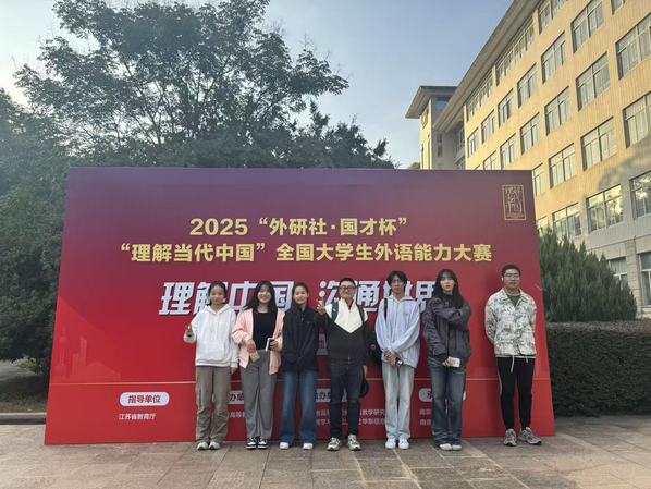 近日,2025“外研社·国才杯”全国大学生外语能力大赛江苏赛区综合能力赛项在南京农业大学卫岗校区顺利举办。我校学子与来自全省70余所高校的选手同场竞技,展现出扎实的语言基础、敏捷的思辨能力以及对当代中国国情的深刻理解。其中,23英语许蕾同学凭借出色发挥荣获一等奖并成功晋级国赛,创造了历史最好成绩。23英语李佳怡同学夺得二等奖,23英语曹英杰、23英语赵梦茹和24金融马懿雯三位同学均获得三等奖。