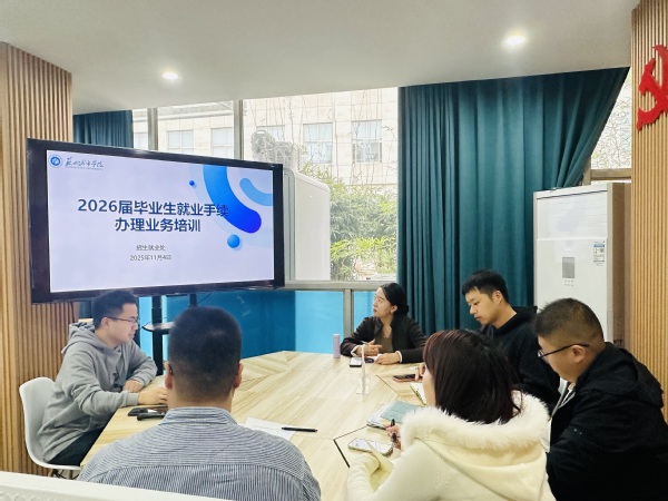 为贯彻就业优先战略,落实教育部关于高校毕业生就业服务“全链条优化”的工作部署,提前梳理业务流程、明确操作标准,提升就业手续办理服务质量,11月4日上午,我校在“家门口”就业服务站召开2026届毕业生就业手续办理业务培训会,各学院2026届毕业生就业负责人参会,会议由招生就业处朱冯主持。