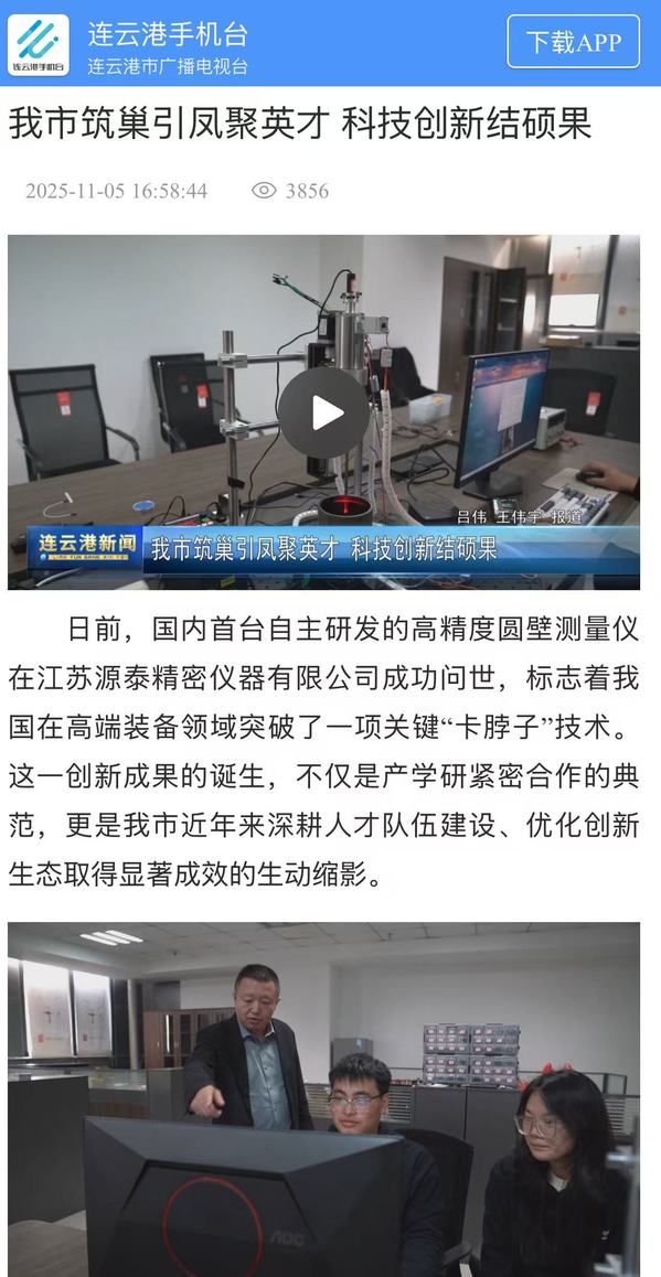 日前,国内首台自主研发的高精度圆壁测量仪在江苏源泰精密仪器有限公司成功问世,标志着我国在高端装备领域突破了一项关键“卡脖子”技术。这一创新成果的诞生,不仅是产学研紧密合作的典范,更是我市近年来深耕人才队伍建设、优化创新生态取得显著成效的生动缩影。