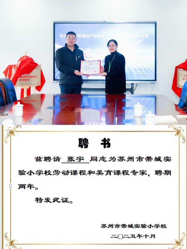 双方的合作并非止于一堂课或一场活动。依托苏州市级的社会教育研究课题,本次联动将学术研究、教学实践与社会服务紧密结合。张宇表示:“我们希望通过课程共建,将大学的科研优势、非遗资源与小学的教学场景无缝对接,真正构建一个可复制、可推广的‘高校+基础教育+社区’协同育人模式,为苏州的劳动教育和江南文化的活态传承,贡献‘苏城院’的智慧与力量。”